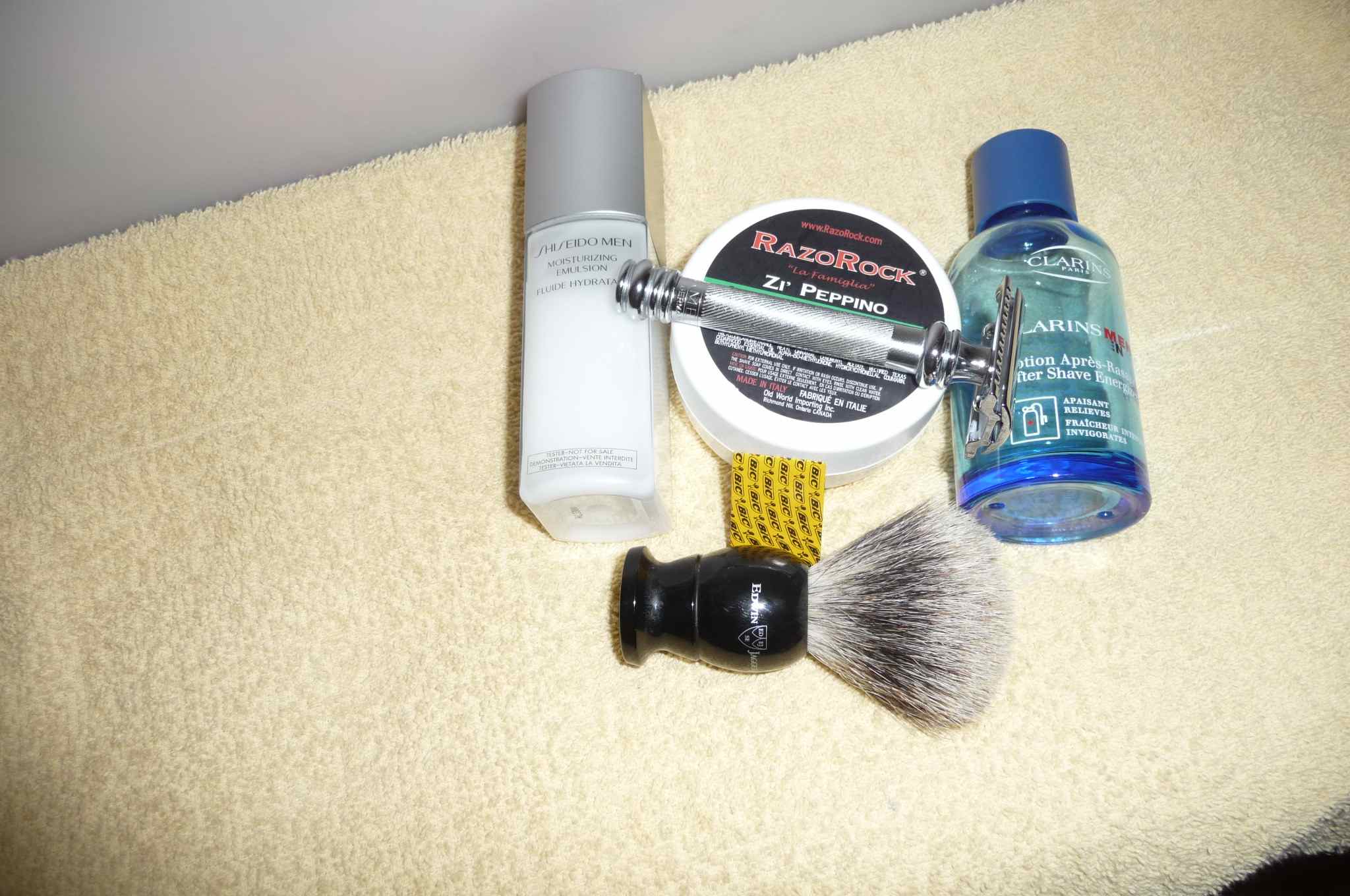 Сегодняшнее бритьё:пену навожу на лице,поэтому без чаши Merkur 38c+Bic мыло RazoRock памазок Edwin Jagger лосьон Кларанс бальзам Шисейдо.