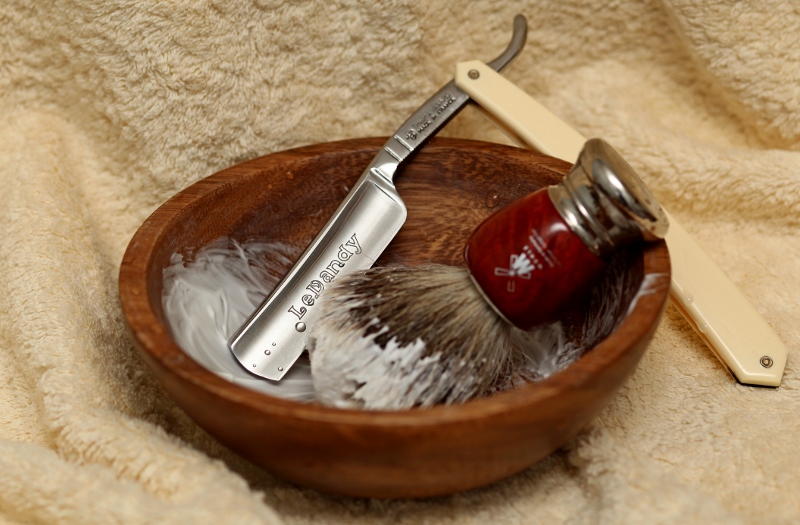 Подготовка: горячий душ. Бритва: Le Dandy, TI, 5/8 Мыло для бритья: Williams Помазок: Muehle Pinsel, вроде серебренный барсук После бритья: Успокаивающий бальзам после бритья Yves Rocher "Женьшень актив для мужчин" Ремень: подвесной от N*X*S Чаша: миска из зоомагазина. Всем удачной недели.