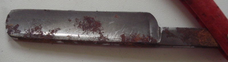 До того все прекрасно видно, а после того имеют место быть изящные повороты и хрен что там поймешь. Но из того, что сумел рассмотреть, так риски глубоковаты. В оригинале они тоже имеются, да и на всех бритвах они имеются, так уж их делали, но тут глубоковаты на мой взгляд.
