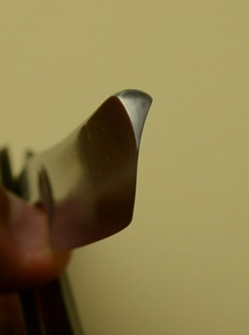 Ручка из кости, предположительно слон. На фото ручка получилась не очень похоже, в реале цвет более светлый и слегка желтоватый. Возле верхнего пина имеется трещина, заклеена цианакрилатом. При нормальном использовании проблем не будет.На фото ручка получилась не очень похоже, в реале цвет более светлый и только слегка желтый. Заточена и полностью готова к бритью. Ширина полотна 16 мм, толщина в обушке чуть меньше 4.5 мм.