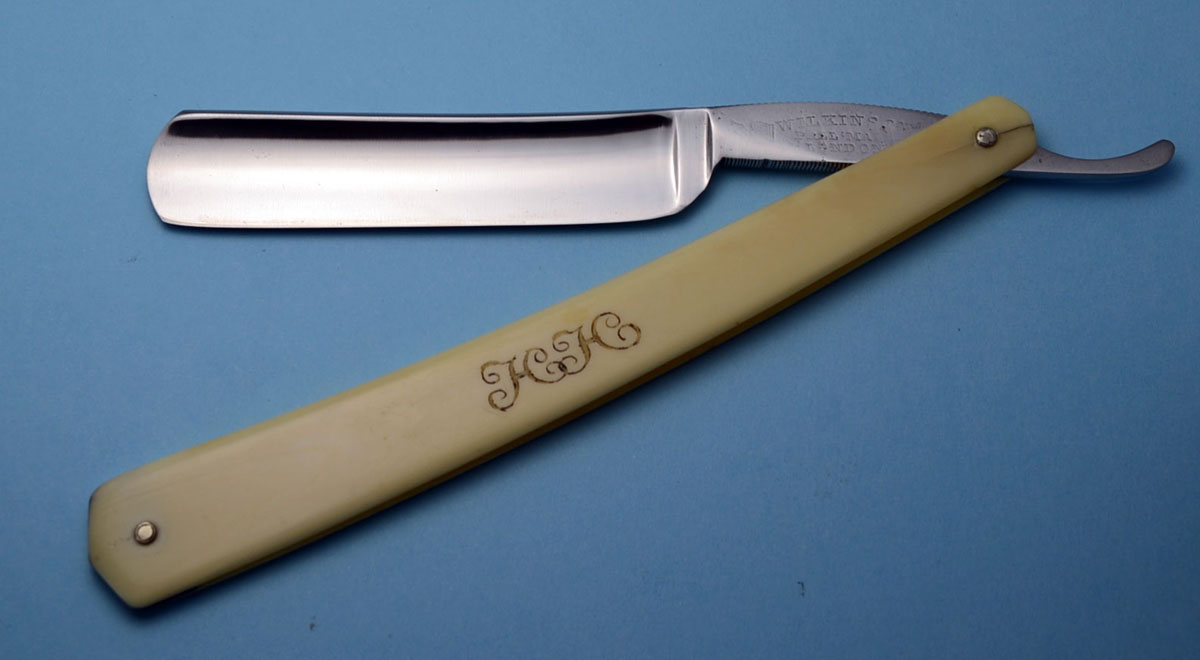 Сведения о фирме: http://britva.ru/forum/viewtopic.php?f= ... itt#p53482" onclick="window.open(this.href);return false; Фирма благополучно здравствует и поныне, правда, опасные бритвы уже не продает http://www.truefittandhill.co.uk/" onclick="window.open(this.href);return false; Скорее всего, бритва изготовлена в Шеффилде по заказу этой фирмы. Ручка из кости, родная, клинышек - металл. У концевого пина имеется трещина. Проклеена цианакрилатом, прочность на уровне, при нормальном использовании проблем не будет. Геометрия - клин, бритва точилась очень немного или вообще не точилась. Заточена и полностью готова к бритью. Ширина полотна 18 мм, толщина в обушке 5.5 мм.
