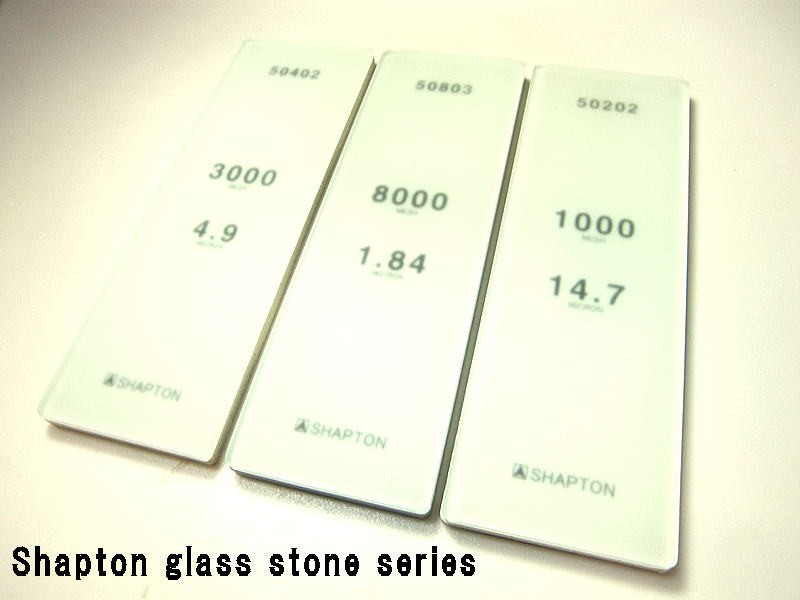 Shapton - это тоже японский производитель качественных водников. Твердость абразива и жесткая связка в этих камнях придают им высокую скорость работы (быстрый съём металла), однако из-за этого же они теряют в качестве обработки поверхности кромки бритвы - не удается получить гладкий "микроподвод", что неминуемо должно сказаться на комфортности бритья (для этого нужны кромка "в нитку" и гладкий "микроподвод"). Но компания не стоит на месте и недавно создала менее "грызучую" серию, ориентированную (по словам самой кампании) на пользователей бритвы - Shapton GlassStone - Ceramic on Tempered Glass (GlassStone) High Carbon (HC) Series - http://hmsenterprises.com/webstore/hmsi ... hapton.php и http://forum.guns.ru/forummessage/224/655093.html. Отличительной чертой всей серии является стеклянная подложка-основание (можно работать даже на слое камня 1 мм не боясь, что он треснет) и феноменальная абразивность до 30 000 грит. Но единичные отзывы и "заурядные" характеристики кромки не убеждают в покупке этих камней. Цены от 60 дол - http://www.ebay.com/itm/Shapton-Glass-s ... 3cd0c3899b Прошу обратить внимание, что после 8 000 грит шероховатость поверхности "микроподвода" не уменьшается с ростом гритности камня (а должна идти полировка с уменьшение шероховатости), и что камни в 10 000 и 30 000 (их и рекомендует производитель для бритв) грит дают примерно одинаковое качество поверхности, при разнице в цене в 3 раза. Хотя пользователи тридцатки отмечают повышение комфорта, однако таких наблюдений очень мало.