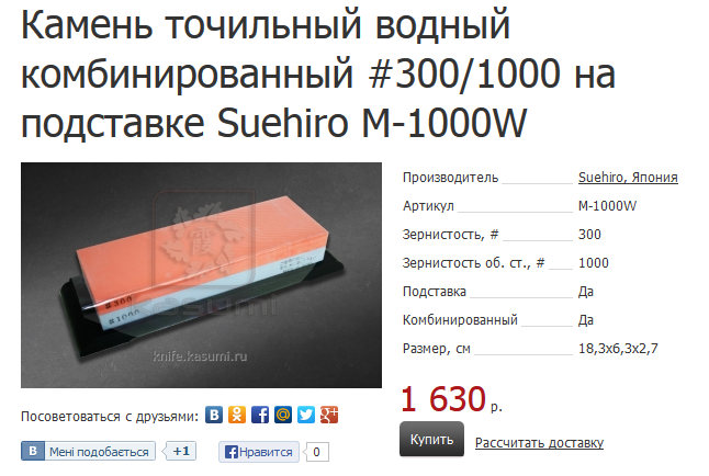 Naniwa IN-2090 210x70x10 S10000 With Stand Этот: http://knife.kasumi.ru/katalog/vodnye_kamni/33846/" onclick="window.open(this.href);return false; и вот этот: http://knife.kasumi.ru/katalog/vodnye_kamni/04885/" onclick="window.open(this.href);return false; Работают прекрасно,не забиваются, сталь рисует свои рисунки, видно где есть съём метала а где нет, нареканий нет, кроме одного, 1000-ный почти стерся. Все остальные камни-вечные, если их не ронять и не давать в другие руки. Re: Выбор камня или снова новичок (реальные отзывы)Да, японские искусственные водники считаю апогеем заточки. Ничего больше не надо. Остальное-баловство.