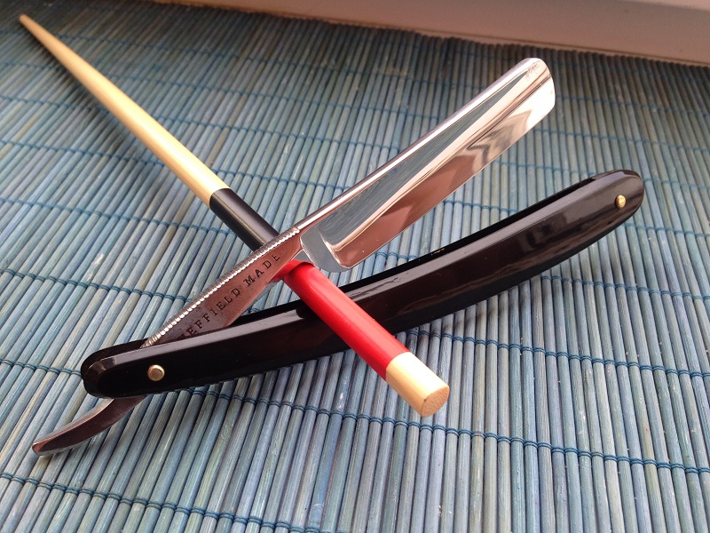 Франция , с родными комплектующими . Длинный клинок , порядка 15 см .Ширина полотна 4/8 . Следов использования , в прочем как и заточки нет . Заточена и готова к бритью