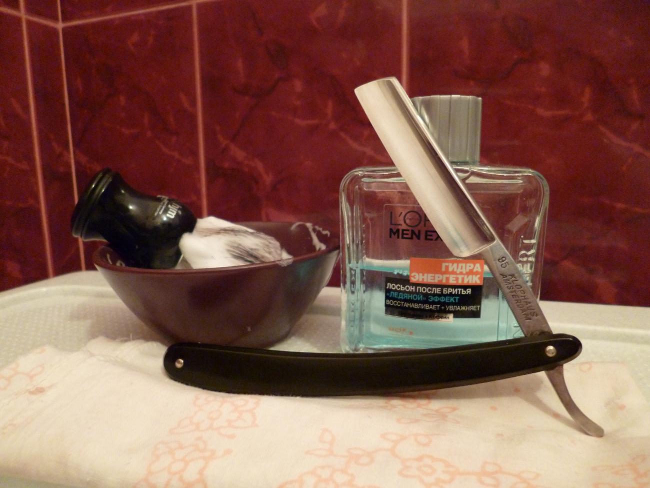 Бритва: старинный французский клин. Помазок: Hans-Jurgen Muller KG, покупал на britva.ru (заказывал с нарисованной мельницей, приехал с надписью hjm) Мыло: Dove Men+Care Лосьон после бритья: L'oreal Men Expert. Станканчик: купил на распродаже в Ашане. Чашечка для мыла и пены: керамическая салатница (куплена в Метро) Камень из квасцов: ALUN (куплен на britva.ru).