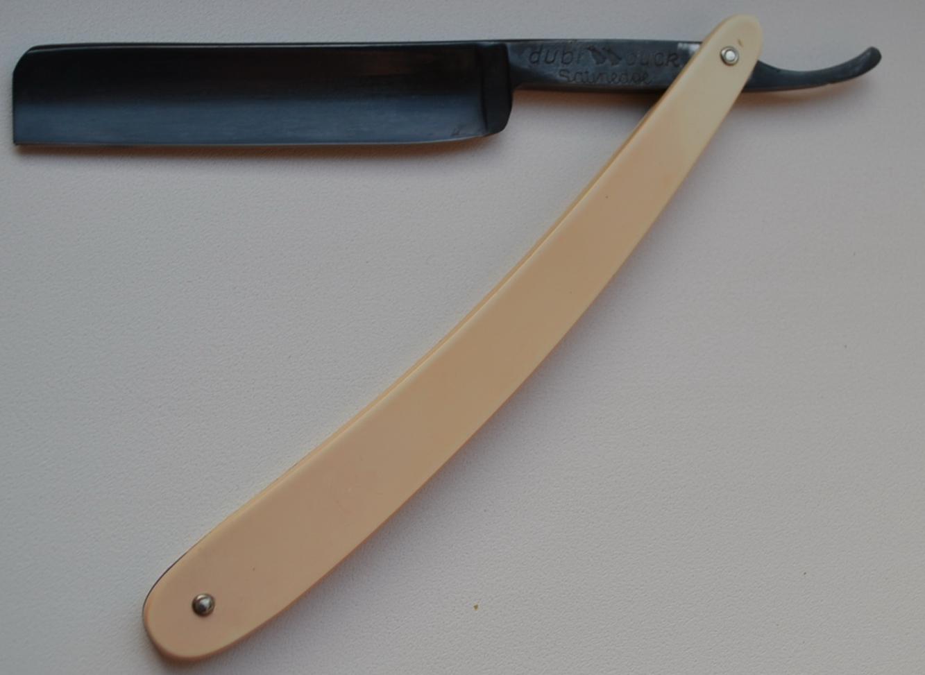 Бритва немецкая, знаменитые дубль дак или две утки. Ширина 5/8, ручка целлулоид, полотно вороненое, заточена и полностью готова к бритью-1шт Ремень французский -1шт ПРОДАНО Утки Show