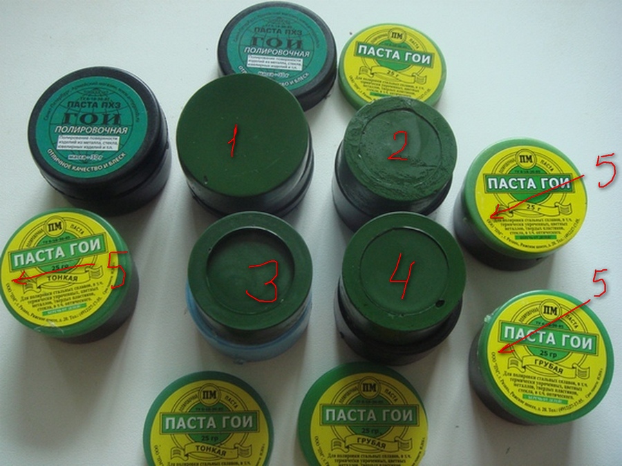 Паста ГОИ которую сейчас продают это рулетка, купил хорошую значит повезло! Поэтому каждый новый купленный кусок надо пробовать осторожно, смотреть результаты что получается. Согласно ТУ 6-18-36-85 различают четыре номера пасты ГОИ в зависимости от размера абразивных частиц: