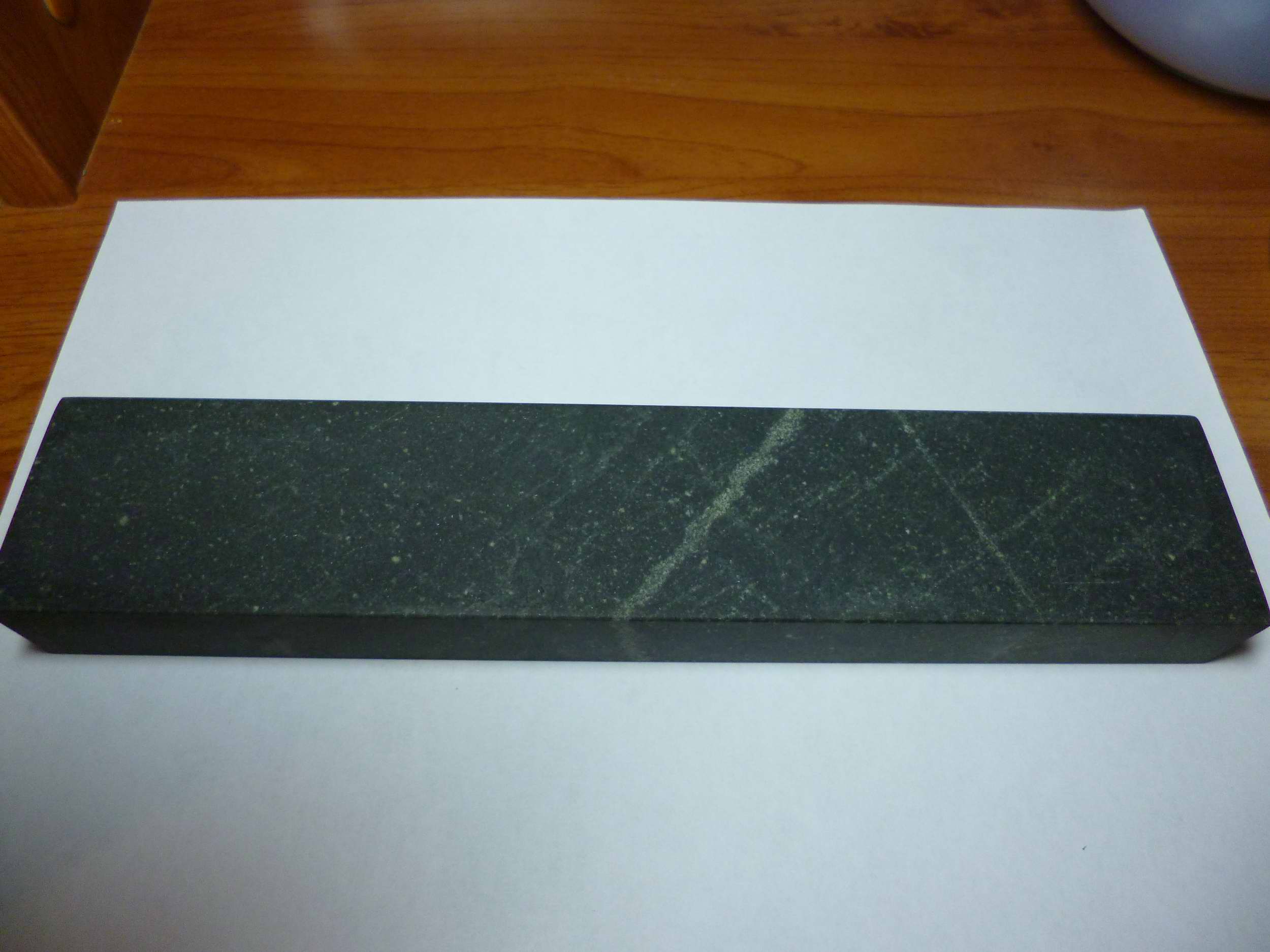 Попал в руки такой вот натуральный сланец. По словам продавца советский. Камень достался новехонький. На фото сторона, доведенная на КК F800 (завтра буду доводить на 1200, сегодня сил уже нет) По свойствам: Камень чрезвычайно твердый. Я бы поставил его по твердости перед яшмой. Выравнить мучение. Воду вроде не впитывает. На фотках отливает зеленым оттенком, на самом деле он черный. Размеры не детские 250х50х25 Может кто узнает по внешнему виду на что похож?
