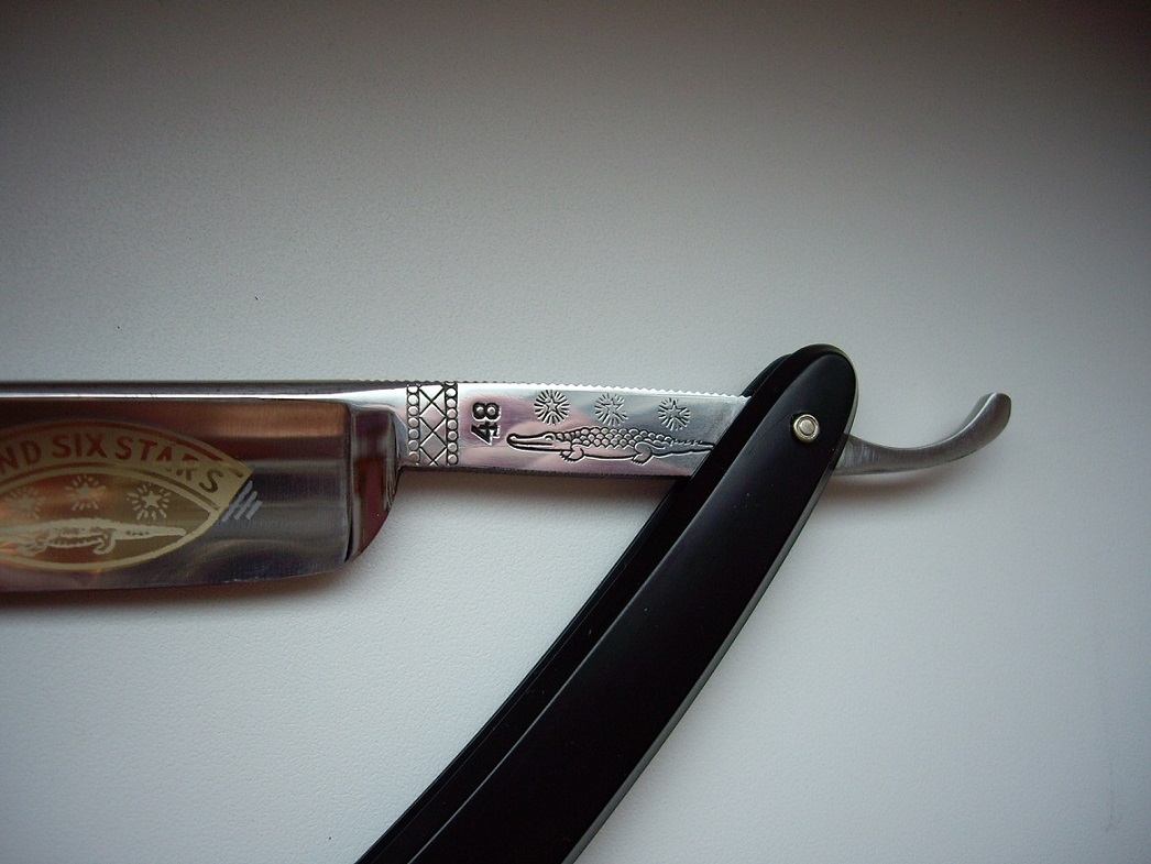 По мне так очень красивая бритва - в отличном состоянии - эстетически - и крокодилы ни чем не хуже птичек или пальм - бриться не мешают Ну а как бреет и держит заточку ТС виднее