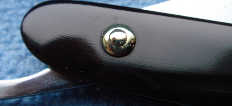 Re: Бритва до... и после...День добрый много споров по поводу пинов а на самом деле все намного проще. Все работы были сделаны в ручную, ручка перед установкой пинов была идеальная от шкурена и отполирована, единственное мое упущение когда на этапе клепки я немного не до клепал и перешел на полировку пинов наждачной бумагой, а после решил что полотно бритвы закрывается очень легко и пару раз ударил,в следствие того что был зазор и пыль (от обработки пинов по краю шайбы образовался желтый ореол,который я и пытался так безуспешно удалить всеми средствами вот и получилось такое безобразие.) Но будет мне наука на будущее. А пины на ручке я переделал мне такой финал не нравится .ВОТ.