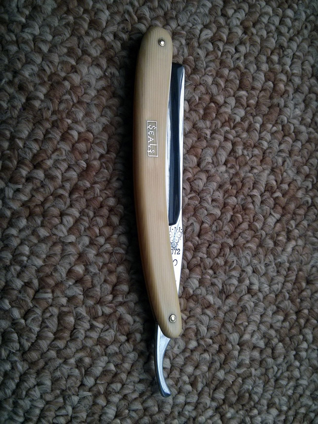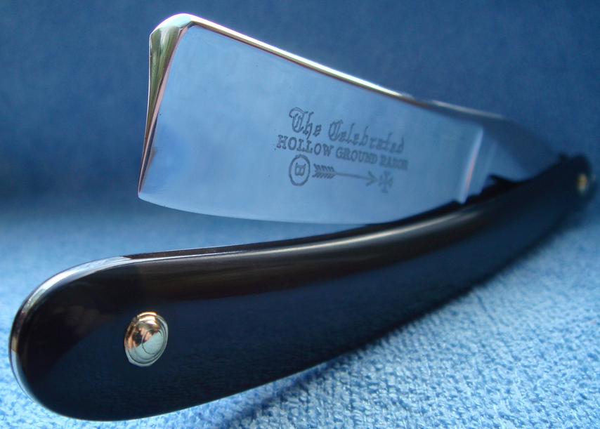 Относительно древний.. "VR" означает то, что бритва была сделана во время правления королевы Виктории, 1837 г. — 1901г. Аккуратно как всегда. Но в роге лучше смотрелся бы.. Челябинские мужики настолько суровы, что правят бритву не на ремне, а на роже.