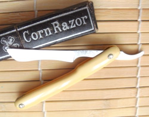 Эта с белой ручкой, вообще непонятно что за бритва. По второй фото видно, что клеймо совсем какое то дивное. Вполне вероятно что создавалась в единичном экземпляре неизвестным мастером для совсем уж каких то непонятных целей. Таких как бритье карликов, бритье висков, сосков, мозолей и тд. По первой фото показалось, что обычный корн очень старый. В общем о ее предназначении сейчас можно только догадываться.