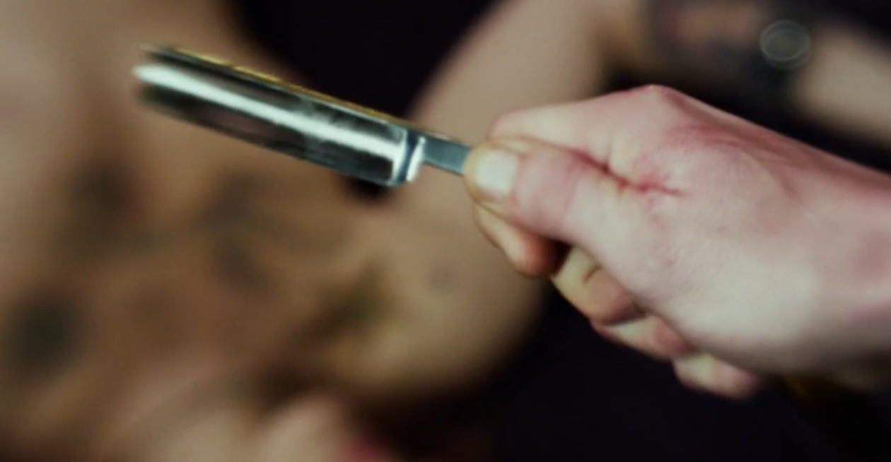 Re: Фильмы с участием бритвыФильм " Семь психопатов " 2012 . Эпизодические герои совершают самоубийство опасными бритвами .