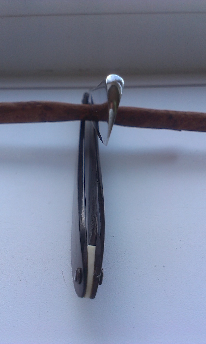 Добрый день. Аукцион на Винсент (может кому-то надо). Как выяснилось, мало того, что я люблю клинковые бритвы, так я еще оказался приверженцем эстетики. Поэтому вынужден "избавиться" от сего творения. Бритва заточена, но кромка оказалась не ровной- мягко говоря. (из за изначально не идеальному обушку). На функц. не влияет. Есть небольшая трещинка возле осевого пина- ничего смертельного! Вообщем все на фото. За фото прошу прощение- фотографировал калькулятором. Размеры : длина от головы до пяточки - 80 мм, общая 144 мм, ширина 14 мм возле головки. Аукцион заканчивается 07,04,2014 г. в 21-00 Москва. Начальная ставка 1 Евро.. Ставка любое целое число. Доставка за пределы Украины 5 Евро. По Украине НП.