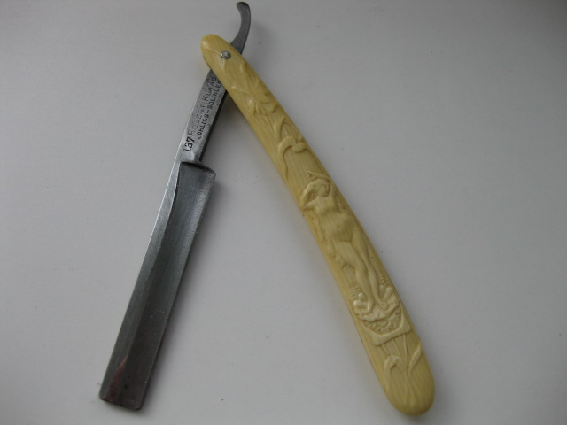 Для такой ветхой и изношенной бритвы ручка слишком нова и хороша. Да и заклёпки слишком свежи.