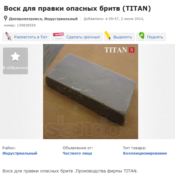 ВОСК для правки бритв. Re: Аукционы: плагиат, развод и "великолепные" описанияВот почему титан не бреет с коробки. Воску ему надо