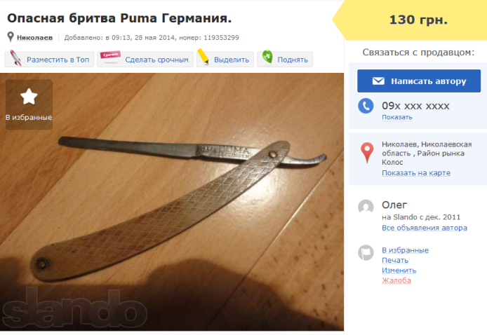 Re: Аукционы: плагиат, развод и "великолепные" описанияРемонт опасных бритв, звонить с 11-00 до 23-00, +79267729357, (viber, whats app, telegram, VK), спросить Олега.