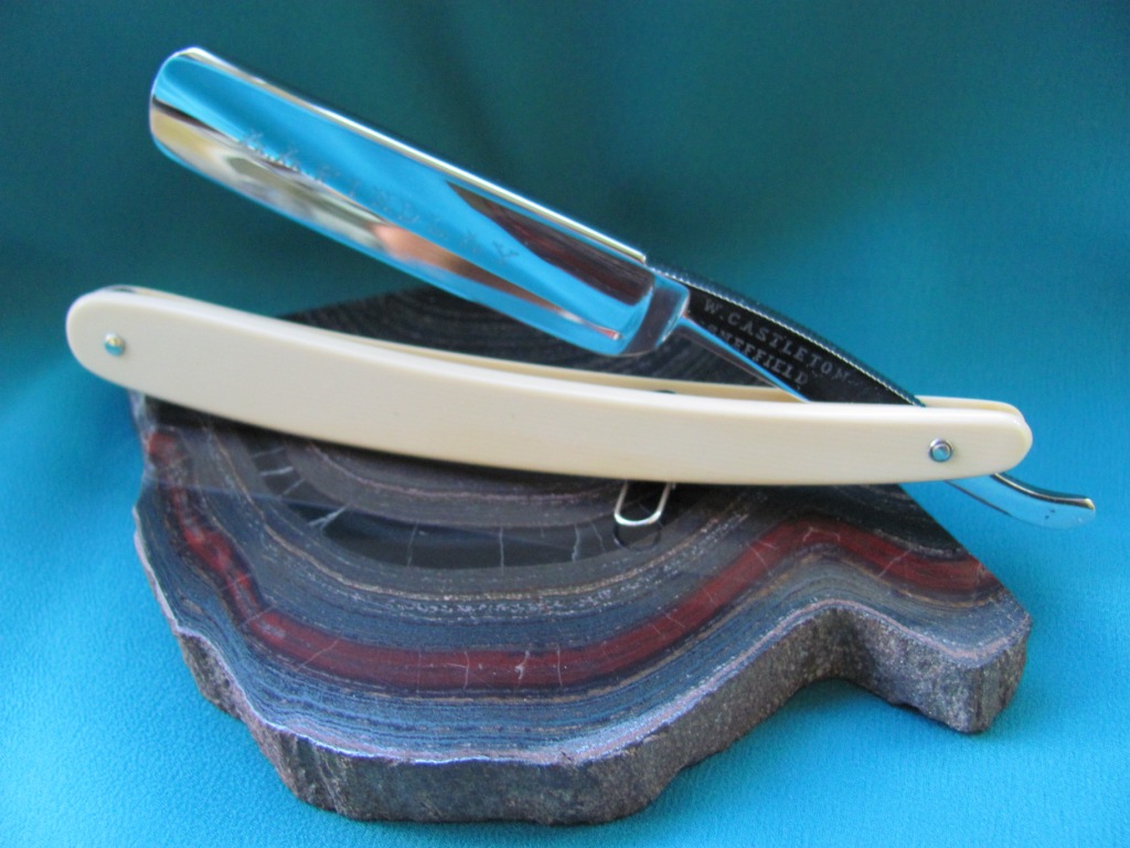 Производитель: W. Castleton. Sheffield На полотне надпись : A.A.Findlay Материал ручек: целлулоид. Размер бритв: №1 ширина 17 мм, обух 4.8 мм №2 ширина 15,2 мм, обух 4.8 мм Состояние: Близкое к идеальному, на одной из ручек, клинышек имеет визуальную деформацию, ни на что не влияющую, видимо время к нему оказалось не столь гуманным. Геометрия бритв идеальная. Заточены и готовы к бритью. Проданы A.A.Findlay Show