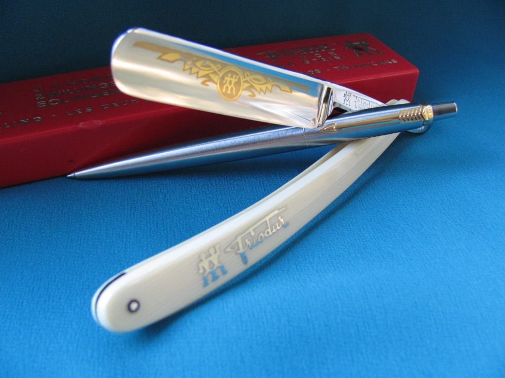 Размер полотна 15 мм, обух 4,5 мм. Ручка -пластик, родной кофр в комплекте. Бритва новая, не точеная ( заводская присутствует), продается как есть , из упаковки. Заточка в подарок по желанию покупателя, но есть возможность первой ночи у покупателя, так что точить не стал пока. Цена: Продана Jowika Show Re: Продаётся от N*X*SJ.A.Henckels , Friodur, inox no stain забираю.