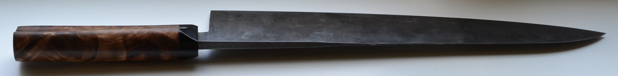 Re: Наши ножиАртельный таким и выпускался - у рукоятки для грубых работ обух 5-6мм в середине для нарезки и гибкиий кончик для филейных работ..легендарный кухонник - коллекционеры по всей России прочёсывают чтобы найти..