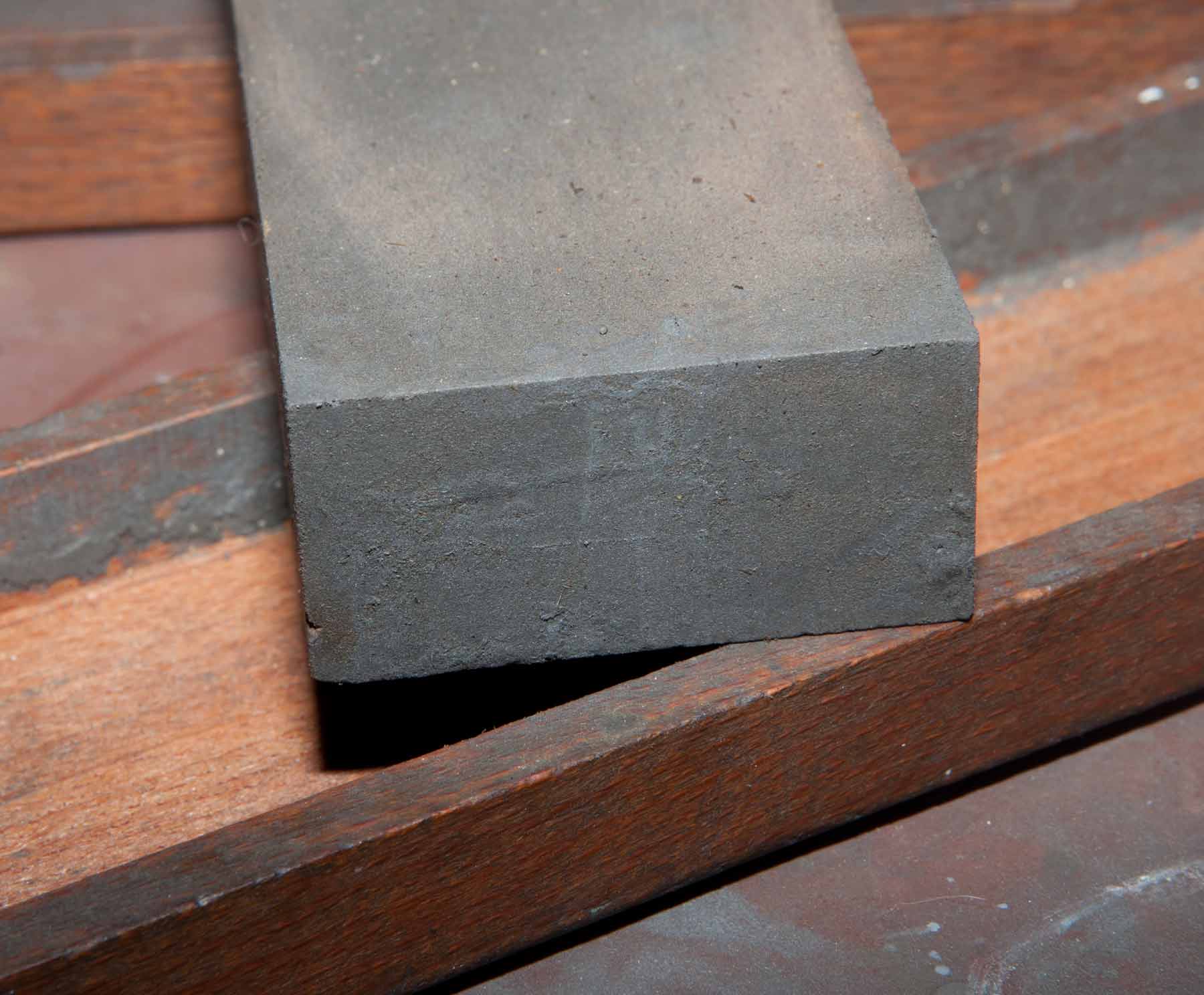 Нанес сетку, начал тереть на наждачке 320. Увидел выработку посредине "кирпича". Тер минут 10 результата видимого не получил. Перешел на наждачку 150. Тер еще минут 10, так же результата не увидел.