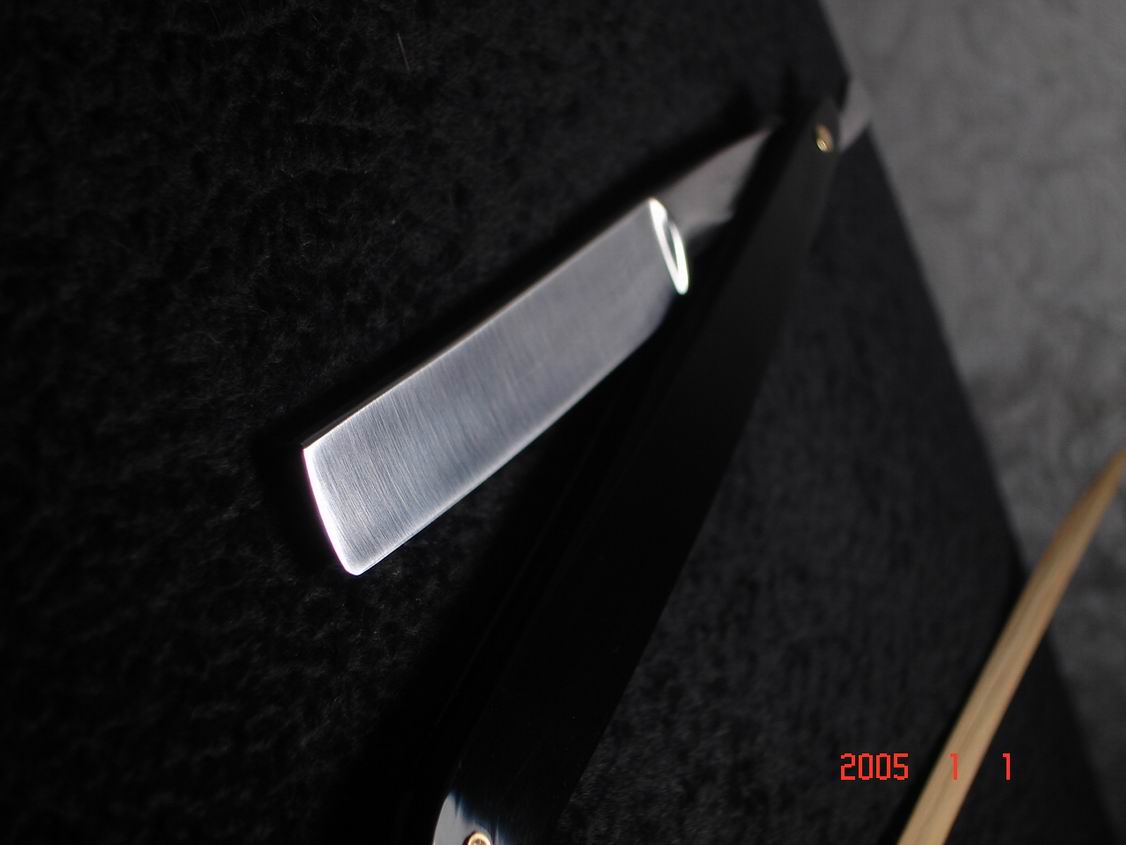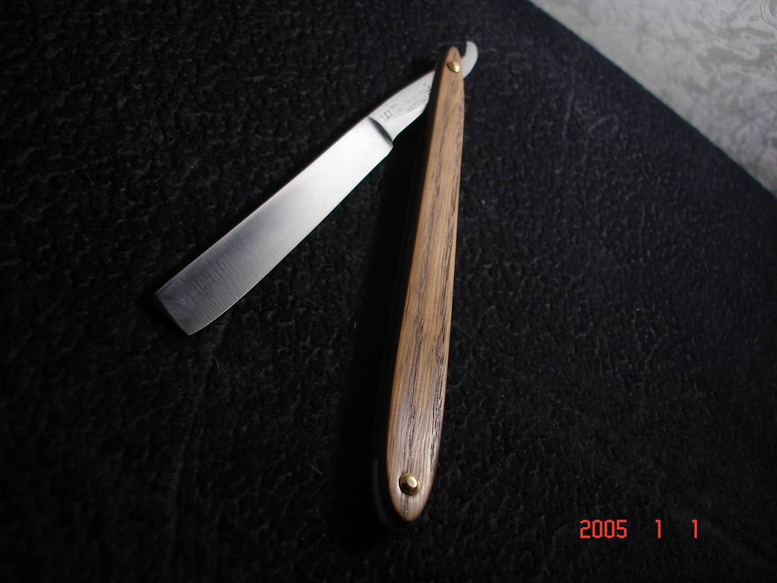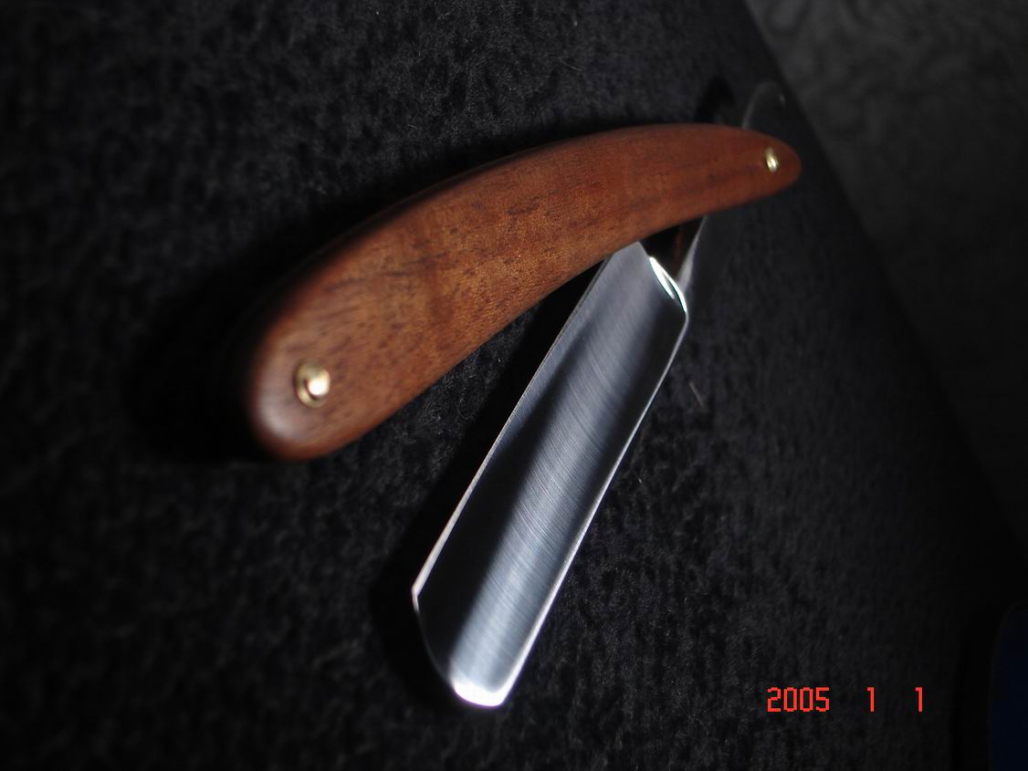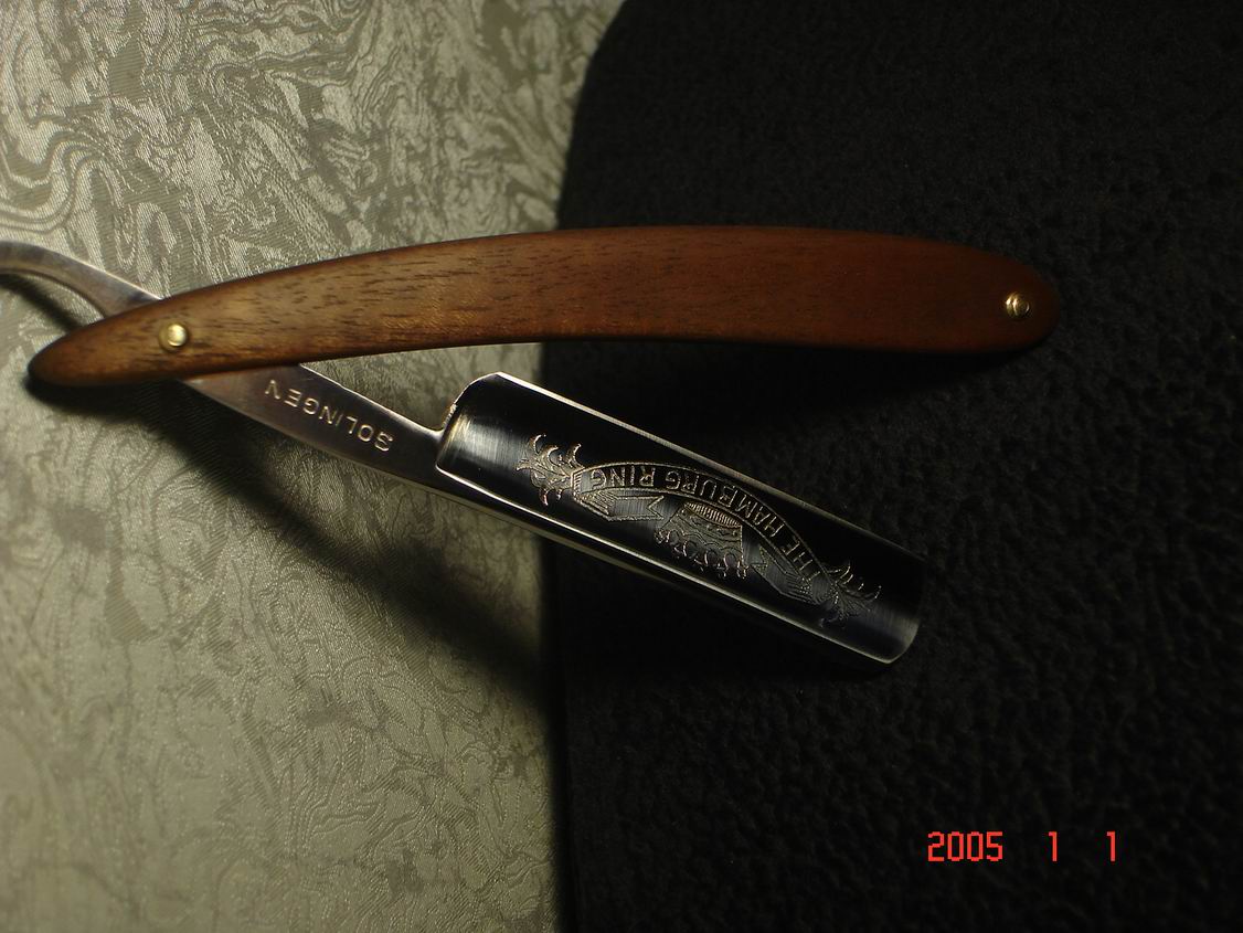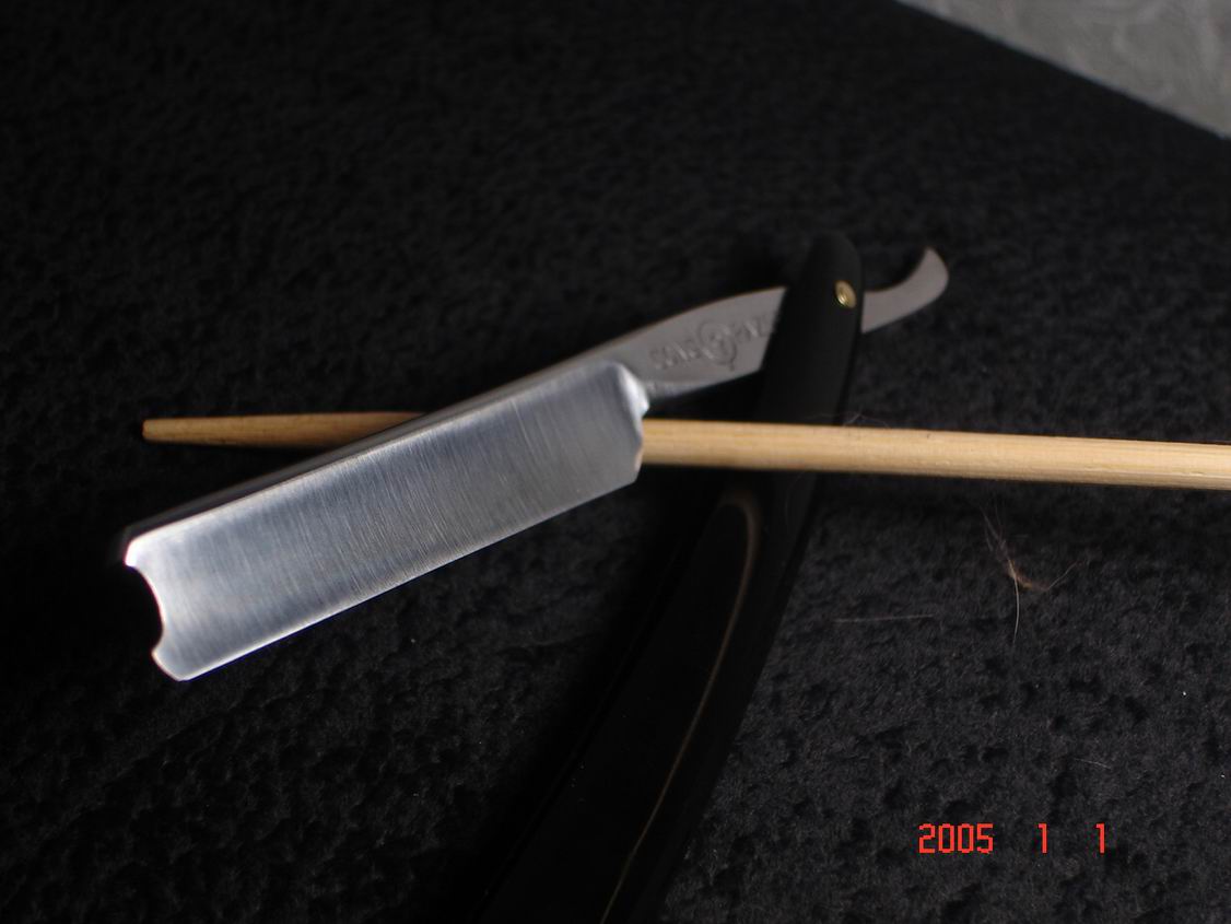 Скорее всего бритва в пользовании не была ,заводская шлифовка , бритва была разобрана , отполирована , ручка восстановлена , дополнил конструкцию шайбочками на осевом пине , что бы избежать трения ручки о полотно бритвы .